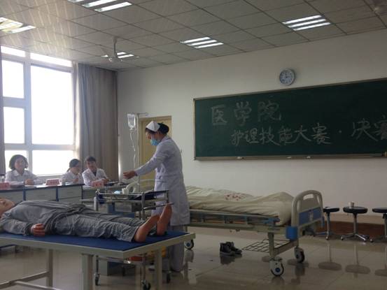 4月10日,公司在实验楼203举行了2015年护理技能大赛的决赛,担任此次大赛的评委有第四军医大学刘喜文教授,公司党总支书记冯小菊等。此次进入决赛的选手共19人,决赛项目包括单人徒手心肺复苏和静脉输液两项。最终决出了前九名。在以后的练习中会继续淘汰五人,其余四人将参加陕西省高职护理技能大赛。