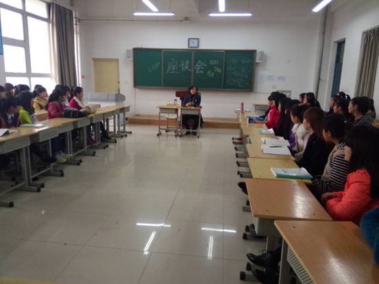 11月21上午,在实验楼217教室,公司党总支书记冯小菊分别和联系班级高职护理1304、1305班同学进行了关于十八届四中全会精神学习座谈会,参加座谈会的有三年制护理1304、1305班的全体员工和辅导员陈萍老师。