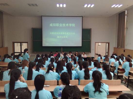 协会指导老师方宁宣读协会简介,党总支书记冯小菊、副经理李晓莉、学工办副主任朱钰叶老师给协会授牌,协会会长段阿敏同学宣读协会章程。