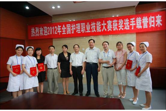 由教育部联合天津市人民政府、工业和信息化部、财政部、人力资源和社会保障部、文化部等23个部门、组织共同主办的2012年全国护理职业技能大赛于6月27日至28日在天津隆重举行,来自27个省、市、区等地的55支代表队、206名参赛选手齐聚一堂,切磋技艺。公司代表队代表陕西省出赛,4名参赛选手全线告捷,荣获一等奖1人,二等奖2人,三等奖1人,创造了陕西选手参加此项赛事以来的历史最佳战绩,实现了陕西选手此项赛事一等奖零的突破。