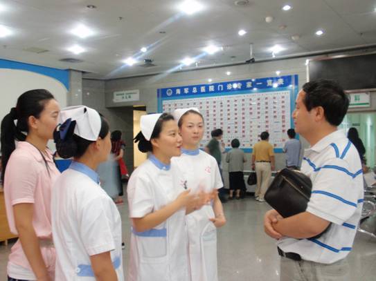 6月29日,2012年全国护理技能大赛在天津闭幕后,我系赫光中主任又带领孟园老师亲赴北京,前往中国人民解放军海军总医院看望在该院实习的我系5名员工。
