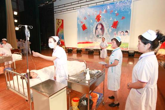 随后,该系2010级毕业生举行护理技能大赛。大赛共设单人徒手心肺复苏、铺备用床以及密闭式静脉输液三个比赛项目。2010级毕业生以班为单位组成十二个代表队参与了比赛。经过激烈角逐,该系1009班和1002班安文等分获团体和个人一、二、三等奖。咸阳市护理协会会长、中心医院护理部主任祁玉凤对大赛情况进行了精彩点评,她认为比赛选手个个精神饱满,仪表端庄,操作正确,行为规范,动作干练,尤其是选手在整个操作流程中充分体现出了医护人员对待病人的热情、关爱和人文关怀以及操作过程的无菌观念;她希望广大医护生在今后的学习和工作中练就过硬的护理职业技能,以真心、爱心和责任心对待每一位病人,将毕生的精力奉献给护理事业!