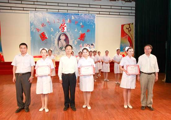 5月11日,在5.12国际护士节来临之际,公司医学系师生在老员工活动中心演播大厅欢聚一堂,隆重举行庆祝第100个国际护士节活动暨护士生传光、授帽仪式和护理技能大赛。咸阳市中心医院副经理卢健、教学科科长袁军民,公司纪委书记席尚君出席仪式,医学系党总支书记、主任赫光中在仪式中致辞。