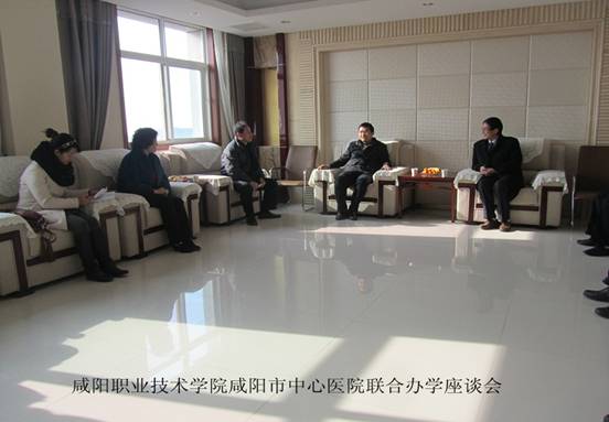 2011年12月7日上午,公司副经理张秦伟、医学系主任赫光中、副主任李佩生及该系教学和员工管理有关同志一行前往咸阳市中心医院参加联合办学座谈会。中心医院业务副经理卢健、护理部主任祁玉凤、医教科科长袁军民及办公室主任赵鲜鹏等参加会议。