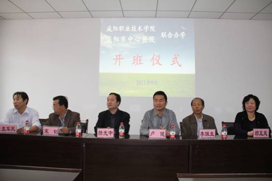 咸阳市中心医院卢键副经理首先致词,他代表中心医院领导班子和全院职工祝贺开班。他说,市中心医院为咸阳市唯一一所三级甲等综合性医院,有责任,有义务,有能力将合作办学、合作育人工作做好;联合办学有利于医、教、研的结合,有利于医院和公司的资源共享,有利于医护人员和教师队伍业务水平的提高,更有利于员工的学习与成长,是互惠互利、共赢发展的大好事;相信经过实践与努力,一定会培养出更加受社会欢迎的护理专业人才。