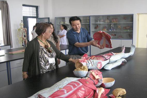 教务处郭俊伟处长与医学系主任赫光中主任共同接见了菲律宾客人,他们对客人的来访表示热烈欢迎。郭处长简要介绍了公司的基本情况及专业设置、人才培养模式等。赫光中主任介绍了医学系基本情况并就护理专业合作办学事宜与菲方进行了探讨。伊曼吉仁.黎罗莎溜董事长一行参观了医学系教学实验室,期间饶有兴趣的通过身旁的翻译与医学系老师进行交流。参观完毕后伊曼吉仁.黎罗莎溜董事长表达了与我系合作办学的愿望。双方愿就合作办学进行进一步协商。
