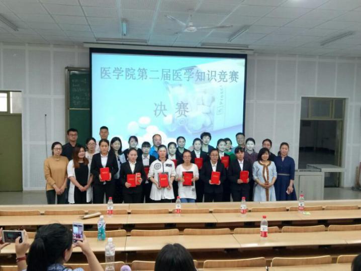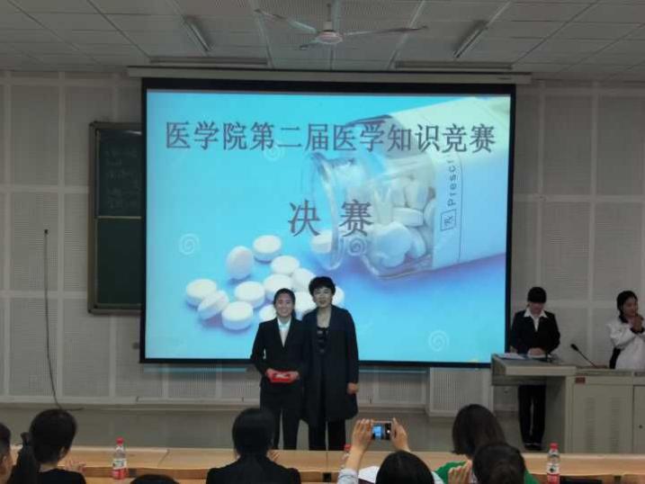 历时一个月的7790cnm必发集团第二届医学知识竞赛在前期紧张有序,广泛参与的基础上,通过初赛、复赛、半决赛环节的层层选拔,最终有8名优秀选手进入决赛。5月4日下午,决赛在艺术楼301教室开赛,7790cnm必发集团师生共计200余人观看了比赛,党总支书记冯小菊,副经理李晓莉出席比赛并为获奖选手颁奖。