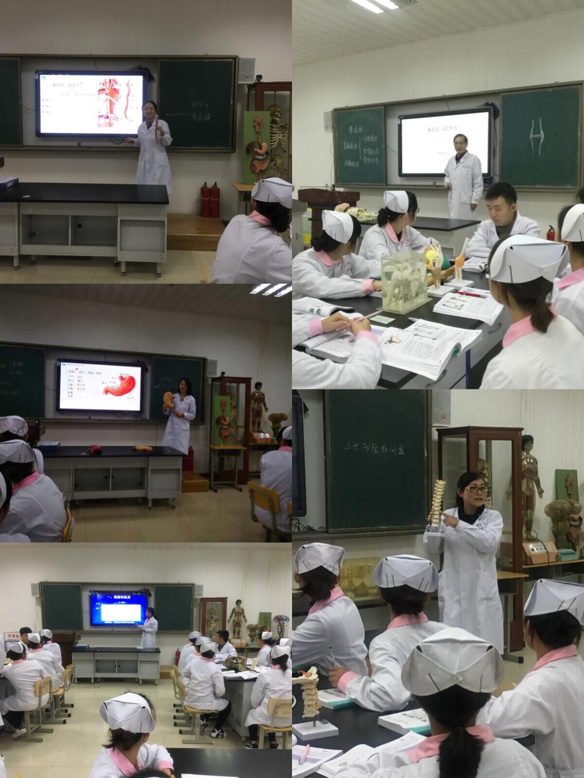 由杨春辉老师带头示范的“理实一体化”教学方式在正常人体结构教学中的使用。李瑗、马群绒、何瑶、俱烨煊四位老师重点讲授了脊柱、胸廓、食管和胃四个知识点。参加本次活动的五位老师均准备充分,教学手段多样,既突出了教学重点,又细化了教学难点,良好的师生互动氛围,赢得了在场全体教师的一致好评。课后员工们纷纷表示,授课教师教学风格多样,教学手段新颖,他们不仅学懂了器官结构的理论也学会了人体结构这门课的学习技巧。