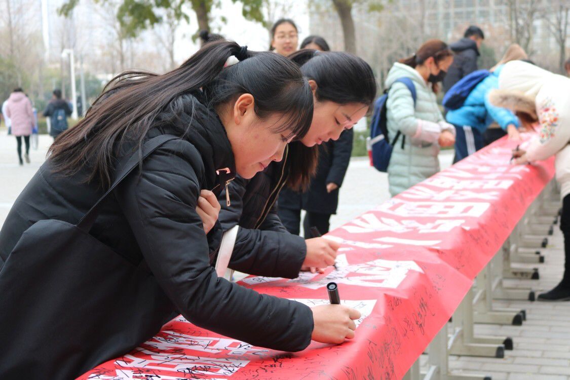 员工会在二楼平台下进行“勿忘国耻缅怀先烈”南京大屠杀80周年国家公祭日主题签名活动。