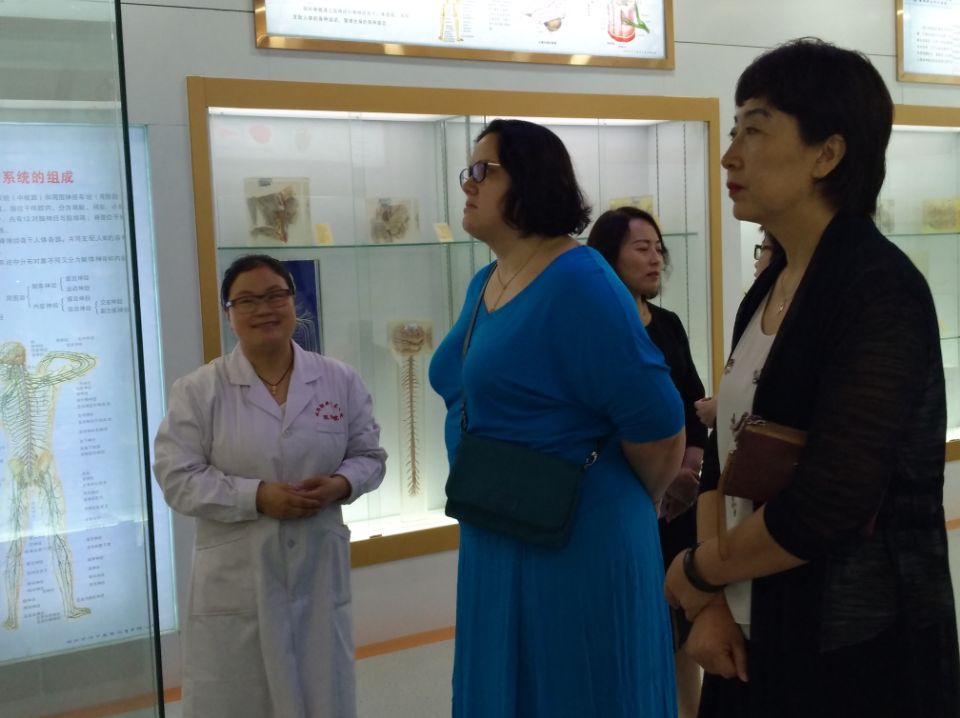 2018年4月3日上午,俄罗斯远东区经济文化交流协会执行秘书长叶卡捷琳娜·罗曼宁科女士一行俩人在冯小菊书记的陪同下,来公司医学技能学习中心参观交流。主要参观了健康服务实训基地、OSCE考站、智慧教室、情境智能急救实训室、影像技术实训中心、药学专业实训中心、人体科学馆。叶卡捷琳娜·罗曼宁科女士对情境智能急救实训室及人体科学馆十分感兴趣,对公司技能学习中心的建设及信息化实训教学条件给予了充分的肯定。同时,就护理办学模式及理念与冯书记进行了探讨与交流,并对公司双方进行人才培养合作进行了沟通。