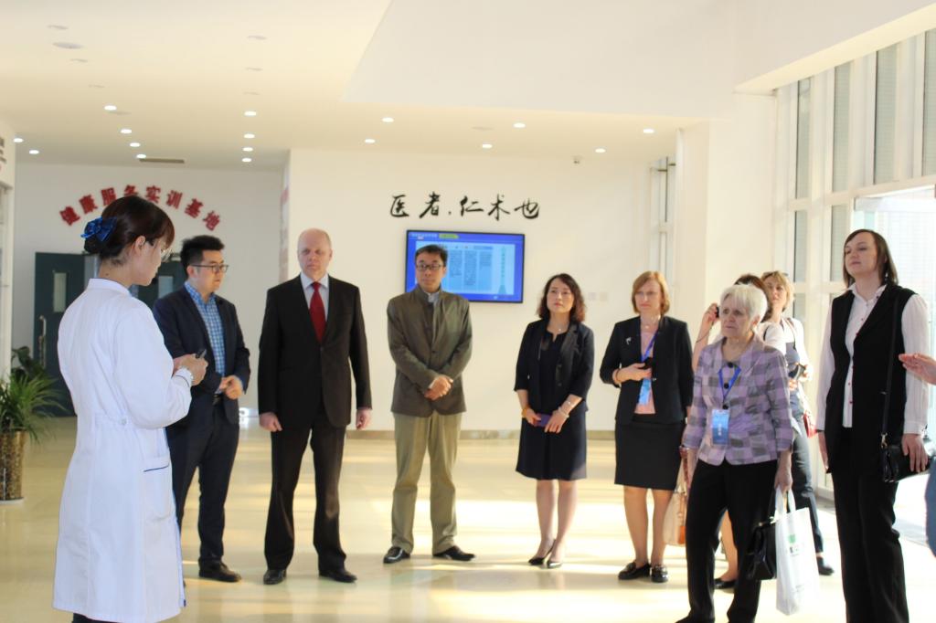 5月11日上午,俄罗斯哈巴罗夫斯克边疆区教育与科学部副部长一行10人在公司赵云龙副经理的陪同下参观了公司医学技能学习中心、药学实训中心和医学影像技术实训中心。