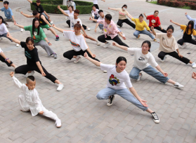 旨在弘扬中华优秀传统文化,丰富校园文化生活,促进员工身心健康发展,努力营造积极向上、健康文明的校园文化氛围。7790cnm必发集团返校复课员工积极参与,群情激昂,活动现场气氛热烈。易有太极,是生两仪;刚柔并济,立于天地。太极美,美在刚柔并济,美在虚实相宜。伸缩开合,收放来去,既有沉重又有软弹之力。太极拳大师和小师傅逐一为大家分解动作并讲解太极拳原理,太极拳大师精湛的武技,扎实的功底,赢得了各位学员的肯定。学员们双手握拳,转腿,向前缓缓冲拳,推掌,动作甚是精确、到位和整齐。