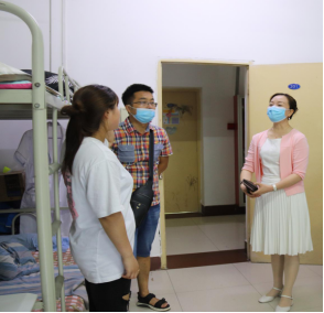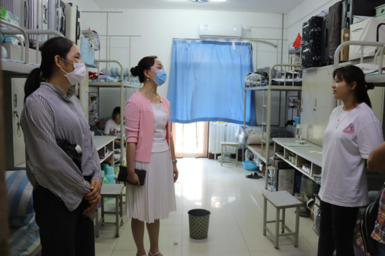 6月12日下午,公司党总支书记刘媛媛、学发办主任方宁等一行深入员工宿舍,全面了解返校复学近月余时间里员工的生活学习情况。