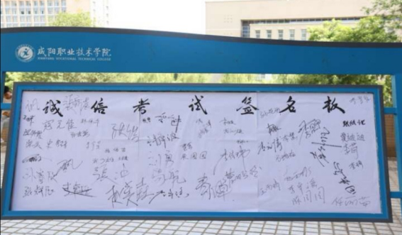活动中员工代表就何为诚信考试,自己将怎么做等方面分别做出了自己的认识和承诺,全体员工代表庄严宣誓,许下自己的诺言并坚定地在签名板上写下自己的名字,接受大家的监督。各班级于当天晚上召开主题班会,辅导员班主任老师进入班级亲自主持,就诚信考试等相关要求再次强调,叮嘱每一位同学做好线上考试的准备,考出水平,考出成绩。
