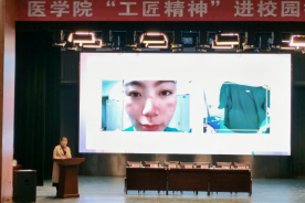 优秀毕业生陈瑶瑶、王雨璠、屈萍依次讲述了他们援鄂的经历和感受。他们的讲述中有临行前的迷茫和坚定,有战斗时的坚持和劳累,也有历时50多天回归家乡的幸福与激动。他们的生动讲述,将整场报告会推向了高潮。