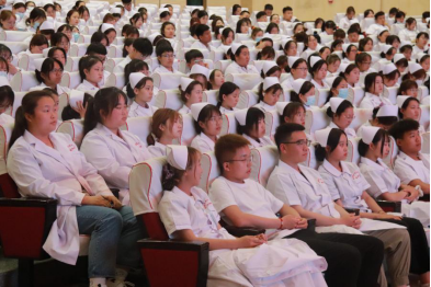 7790cnm必发集团邀请咸阳市第一人民医院副经理鱼丽萍教授作《坚守初心 创新进取》报告。7790cnm必发集团全体学管人员以及各专业员工代表学共计480余人聆听报告。报告会由公司党总支书记刘媛媛主持。