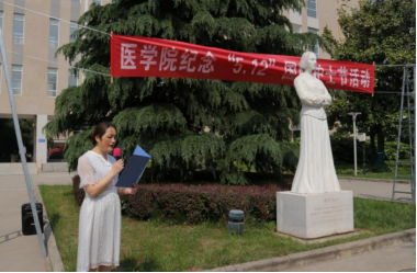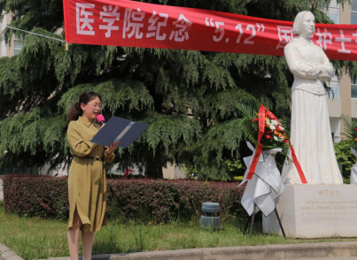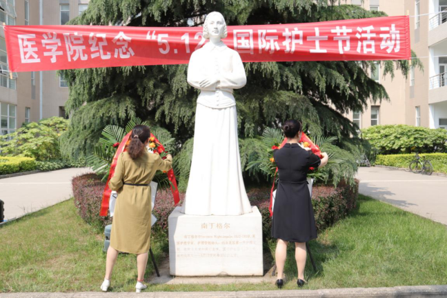 经理朱钰叶、党总支书记刘媛媛向南丁格尔雕像敬献花篮