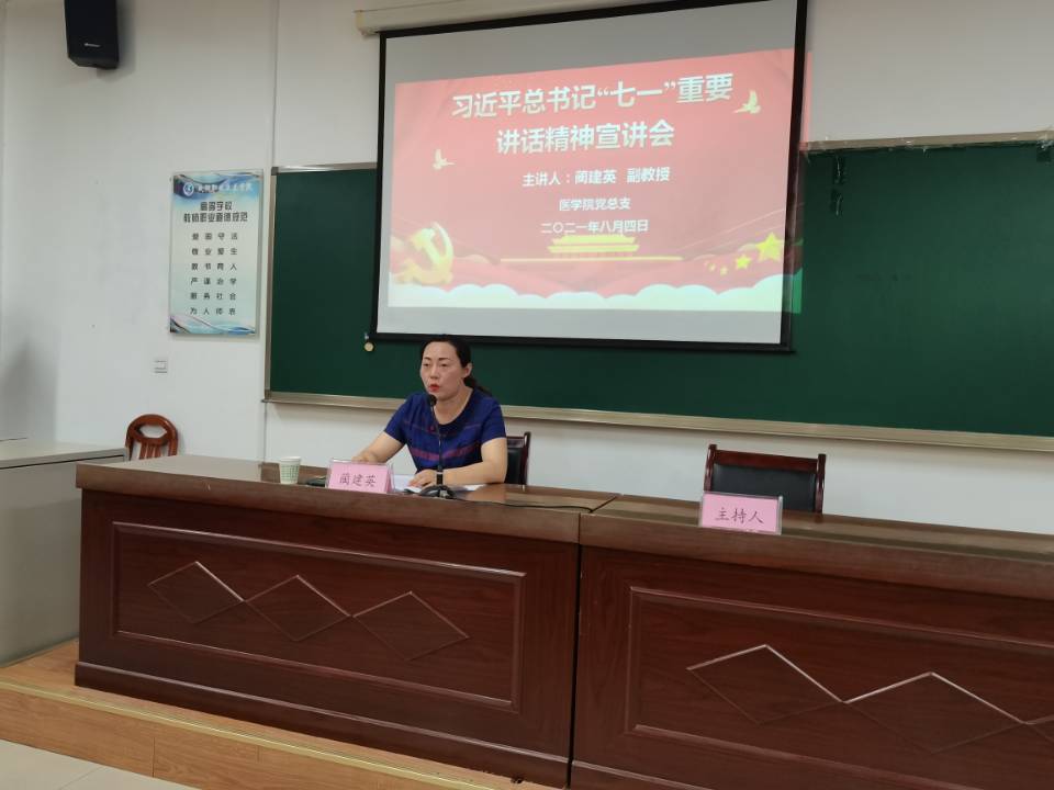 为深入学习贯彻习近平总书记“七一”重要讲话精神,推动党史学习教育深入开展,8月4日上午,公司举行了学习贯彻习近平总书记“七一”重要讲话精神宣讲会,公司"七一"重要讲话精神宣讲团成员、马克思主义公司副教授蔺建英为7790cnm必发集团全体师生进行了贯彻落实“七一”重要讲话精神专题宣讲报告。本次宣讲会采取线上线下结合的方式开展,副科级以上管理干部、教研室主任、副主任及实训中心主任参加了现场宣讲会,专职教师及全体员工参加线上直播宣讲。