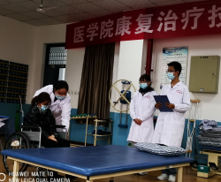 康复治疗技术技能大赛依据比赛大纲,由理论测试和技能操作两部分组成,技能操作分脑卒中康复、骨折康复、慢阻肺康复等项目,选手根据不同病例设置完成操作。此次大赛由来自临床一线的丁天红主任和康复专家杨延平教授及康复治疗技术教研室史江涛、延慧敏、俱烨煊担任评委,最终比赛有6名选手胜出。