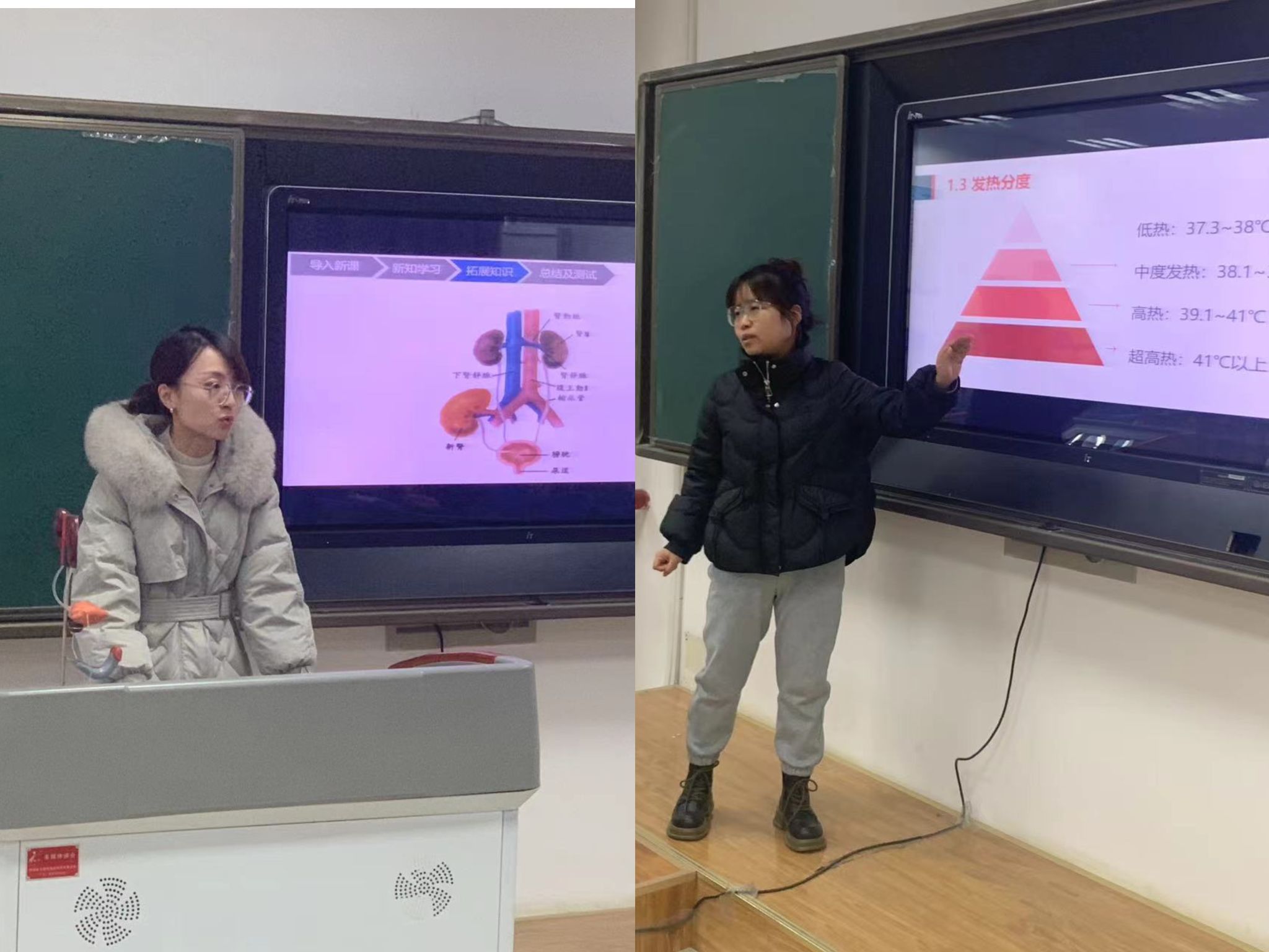 本次活动前两位老师对教学由青年教师窦彤主讲《人体解剖学与组织胚胎学》课程“泌尿系统解剖”内容,从肾脏的形态、位置、被膜、结构及肾段动脉等方面进行授课;郭菡老师主讲《临床医学概论》课程“发热”内容,从病因、临床表现、伴随症状及问诊要点方面进行授课。