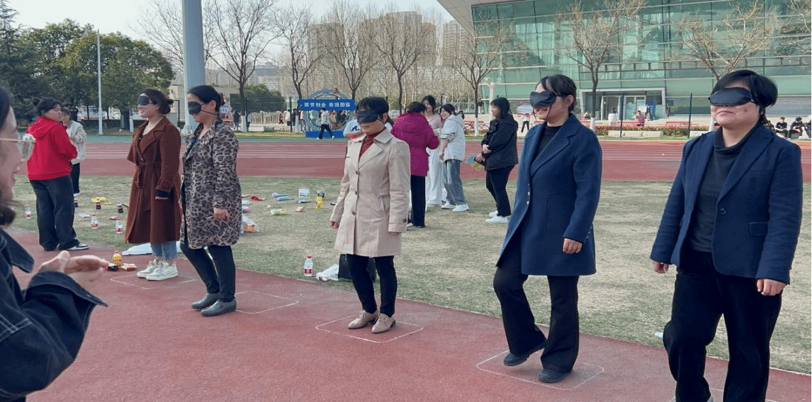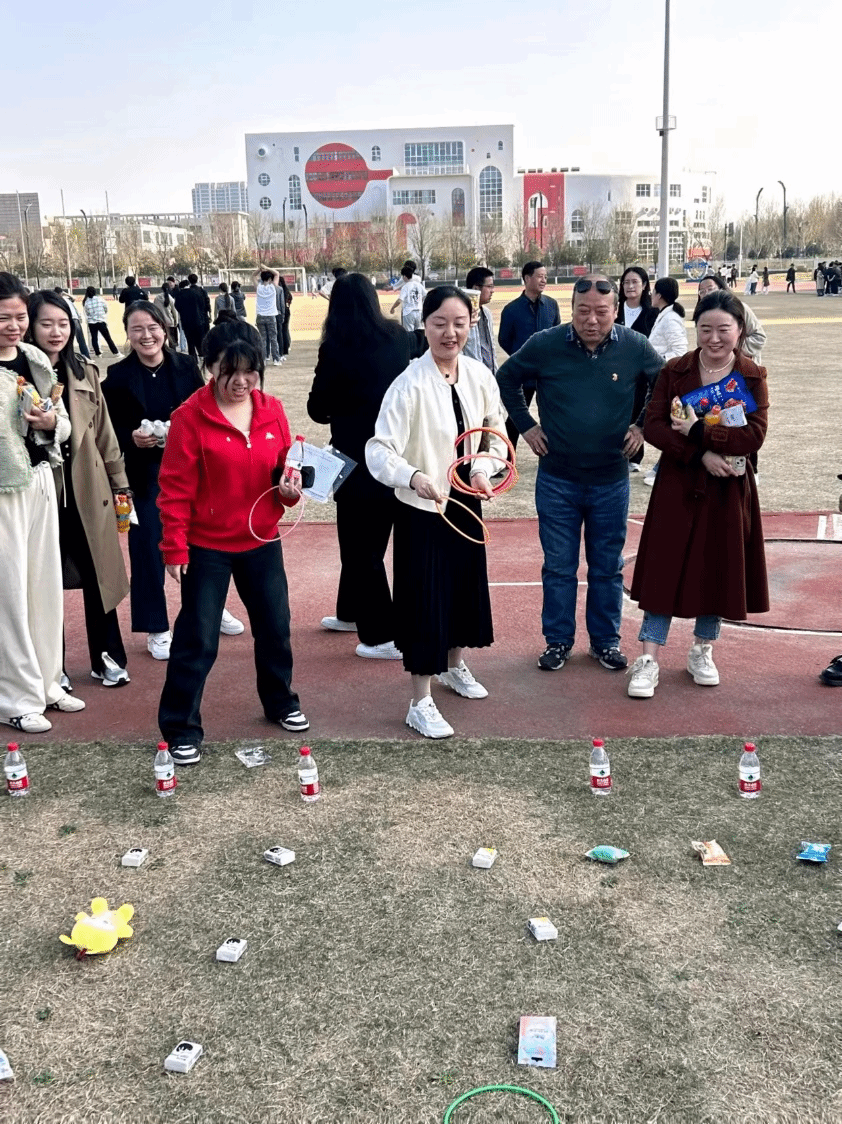 本本次活动共有五项,分别是跳大绳、踢毽子、蒙眼配对、原地踏步、套圈圈, 活动现场气氛热烈,女教职工们积极参与各项文体活动,展现了她们的风采和魅力。