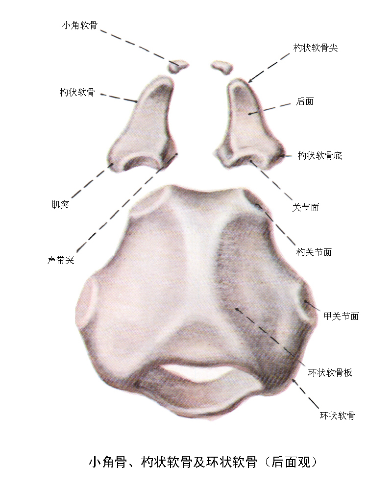 小角骨、勺状软骨及环状软骨(后面观)