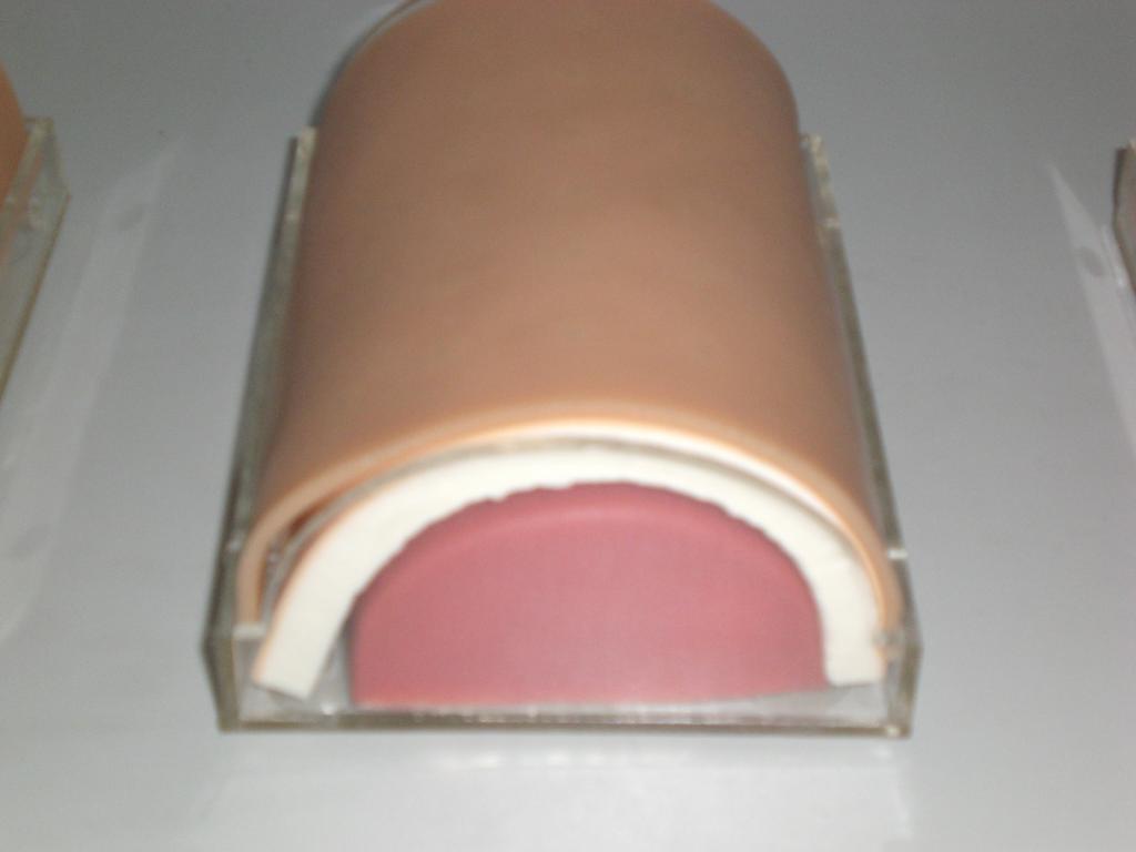 该模型能进行仿真人体血液循环输入,在员工进行注射、输液的实训时能很真实的感到进入血管时的落空感,并且能够直观的看到仿真血液的留出,从而很大程度的模拟在现真实操作,带动员工的学习积极性。