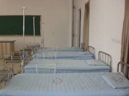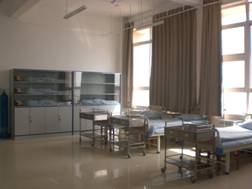 此外,我们还建有校医院一所,其标准按一级医院建立,占地面积1500㎡,建筑面积1200㎡,其中医务室用房面积1100㎡,内设观察病床10张,病床4张,配备6名执业医师,9名护士。医疗设备按基本标准配置,药品及医疗设备总价值120.37万元,校医院的建成为我系员工提供了一个校内真实的见习场所。我系利用校医院的现有资源,在校医院开展部分实训课,真正的将课堂搬进了医院。这样更直观、员工更容易理解。也为我们系节约了建设部分实训室的资本。达到了“校企共建”“互惠双赢”的目的。  (详细见校企合作)
