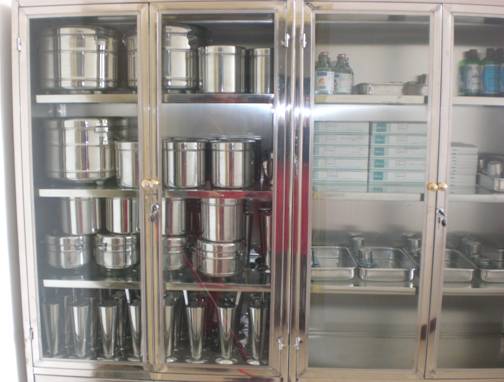 内有储槽,敷料缸、子罐(内有持物钳,卵圆钳)——可用于无菌技术实训课。内部器械按照临床实物11构造,能够使员工真实感受到临床操作的真实性,从而更好的树立无菌观念。