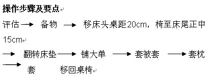 掌握被套式备用床的铺法,同时注意在铺床过程中的手法要准确,铺出的备用床符合是用、耐用、舒适、安全的原则。