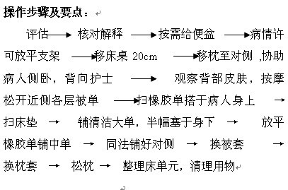 (2)    用物准备 50%乙醇 清洁大单、中单、被套、枕套、床刷(外加布套)或微湿的扫床巾、污物袋,需要时备清洁衣裤和便器(上盖便盆巾)
