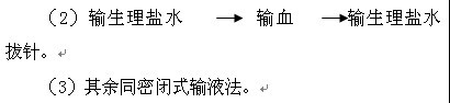 1、间接静脉输血法:同密闭式输液,唯将输液器换为一次性输血器,备生理盐水。