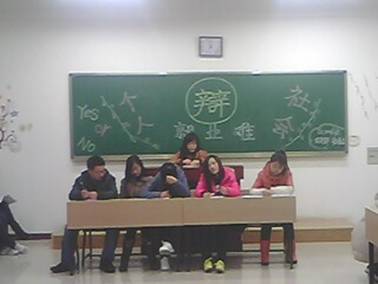 2012年3月1日,医学系护理1116班开展了以“就业难,责任在个人还是在公司”为主题的辩论会。本次辩论会的正反两方围绕各自的辩题展开激烈的辩论,过程精彩紧张,各辩手反应灵活,语言表达清晰。通过本次辩论会,提高了同学们的思辨能力和语言表达能力,丰富了大家的课余生活,并且使同学们树立了正确积极的就业观。