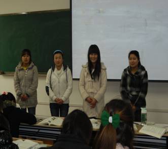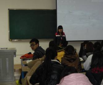 第一环节,以培训为主,首先找班中具有面试经验的同学为大家一个简单的介绍和在面试中回答问题时应注意的事项,其次,由礼仪队的同学为大家演示在面试中应注意的礼仪。