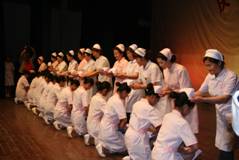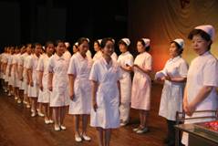 随后,08级65名护理专业员工代表接受了来自各教学医院的13维护理前辈的授帽,通过神圣的授帽仪式,进一步增强我系护生的责任意识和职业自豪感。咸阳市护理学会会长、咸阳市中心医院护理部主任祁玉凤女士代表全体护理学前辈致词,教导护生们牢记南丁格尔誓言,“以至诚务谋病者之福利”,为护理事业贡献力量。
