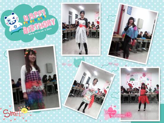 2012年3月15日晚自习,三年制护理1111班和三年制护理1110班分别在本班教室举办了环保服装秀主题班会。两班同学分别以宿舍为单位,积极热情的参与了本次活动。