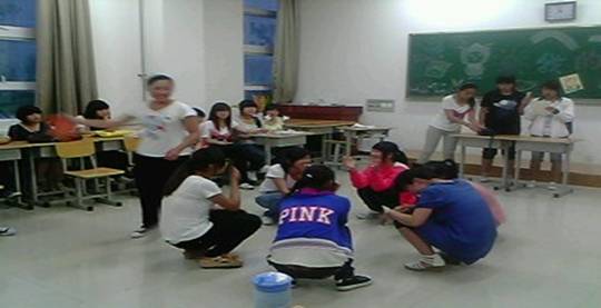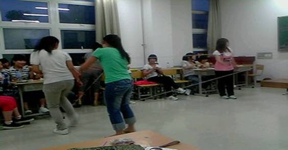 接下来,我们又进行了一连串的游戏表演:丢手绢,三个字,跳皮筋,老鹰捉小鸡等许多我们小时候的游戏,仿佛让我们又回到了那纯真的年代,儿时的一幕幕不停的在脑海中闪现,顺着记忆的长河,流到我们的眼前。蝌蚪,蜻蜓,棉花糖,溜溜球,流淌的溪水,夜晚的星空,还有祖母手中那一把永远不停的蒲扇。