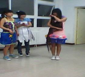 这些衣服都是班上同学用废品,一件件做出来的,里面有她们几周来的夜以继日,又有她们对生活的执着,“T”台上的她们魅力无限,“T”台下的她们很累却也很满足。