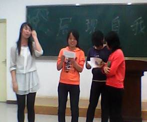 2011年4月17日晚自习,医学系三年制护理1003班在实验楼206教室举行了以“展现自我”为主题的班会。