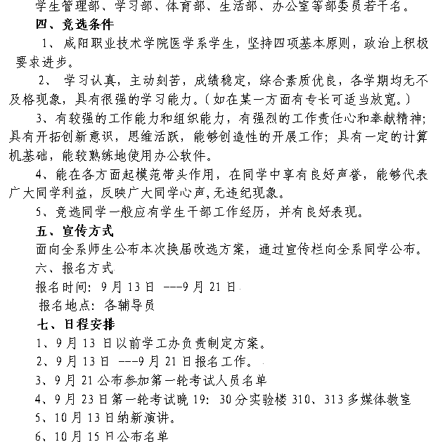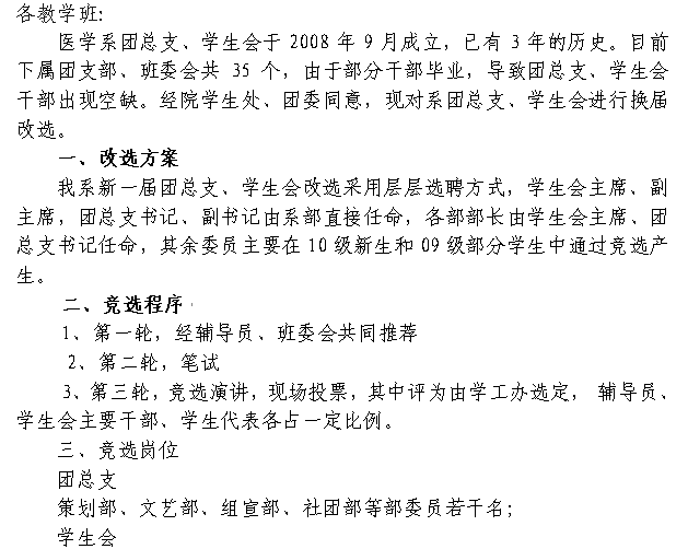 医学系关于团总支、员工会干部换届的安排意见