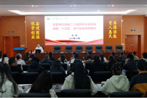 张迪书记以“深学笃行党的二十届四中全会精神,勇担‘十五五’现代化奋进新使命”为主题,从准确把握“十五五”时期我国发展所处历史方位、深刻领会“十五五”时期经济社会发展主要目标、勇担时代使命奋力开创中国式现代化建设新局面三个方面重点阐述,清晰勾勒出“十五五”时期的发展坐标、目标蓝图与实践路径,为全体师生锚定了“十五五”现代化建设的奋进方向、凝聚了攻坚克难的强大合力。