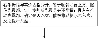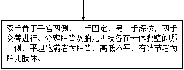 检查者双手置于子宫底部,确定子宫底高度,估计与孕周是否相符,双手指腹交替轻推,分辨宫底处是胎体的哪一部分,圆而硬有浮球感的为胎头,宽而软不规则的为胎臂。